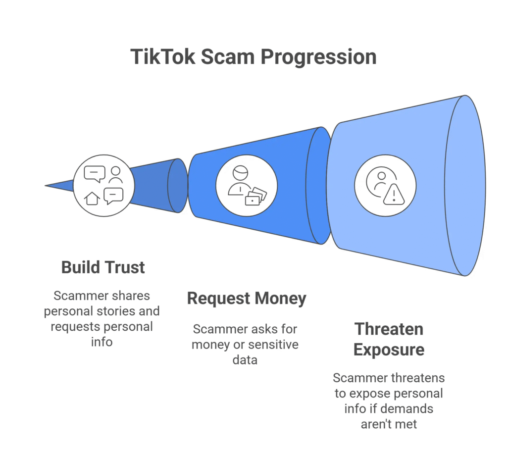 The TikTok scammer girl profiles work in a predictable pattern. They start by catching your attention, slowly build a sense of trust, and once you’re emotionally involved, the manipulation begins. But learning how each phase begins helps you react before things get serious.